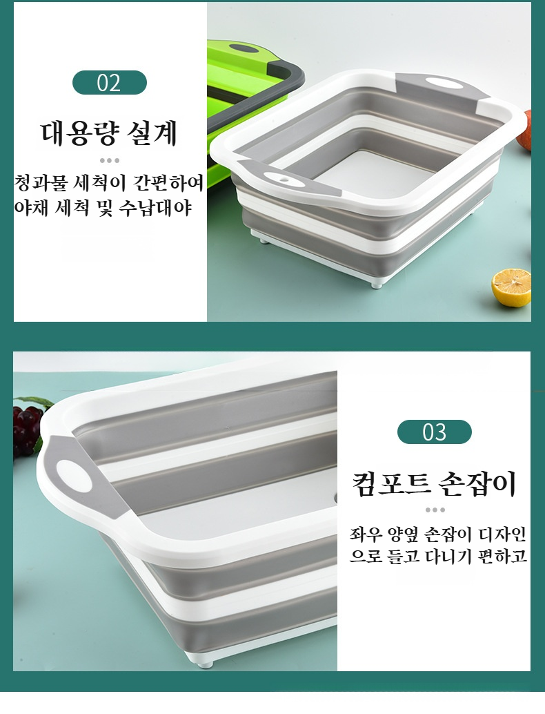 다기능 접이식 도마 휴대용 식판 두 가지 용도의 물빠짐 바구니 3in1 야채 세척 대야 다기능 접이식 채소 절단 대야