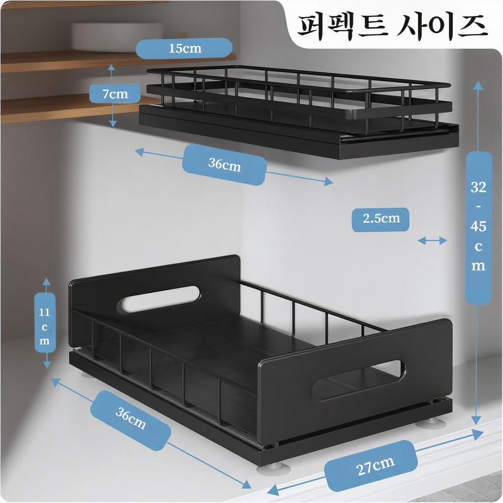 이중 서랍식 주방 수납 선반 전체 이미지